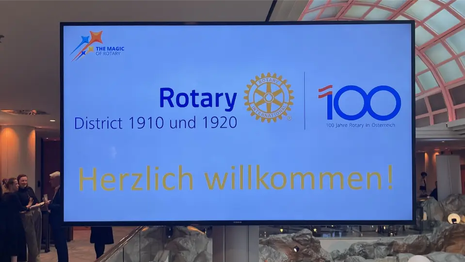 Vienna Marriott Hotel. Unter der professionellen Moderation von Distriktsreferent Claus Bruckmann (RC Wien Gloriette) und Distriktsreferent wurden Vergangenheit und Gegenwart von Rotary Österreich auf kurzweilige und teils sehr amüsante Weise präsentiert.