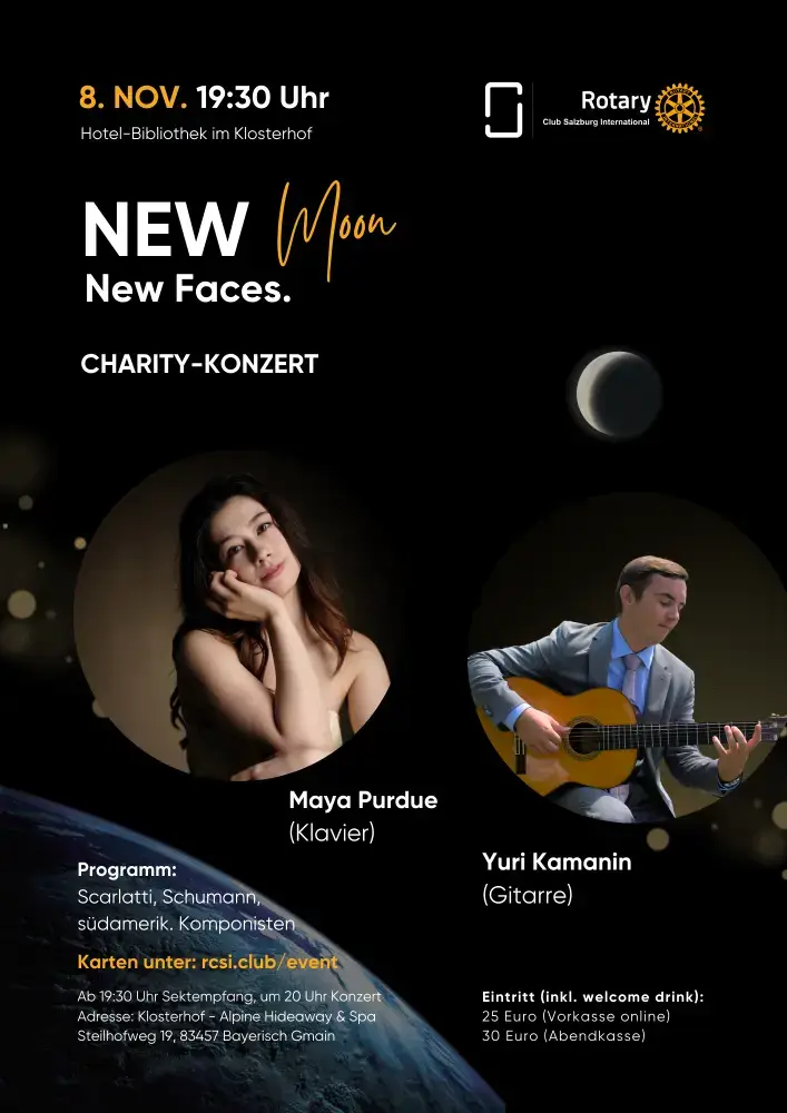 Charity-Konzert „New Moon. New Faces“ am 8. November 2024 im Hotel Klosterhof